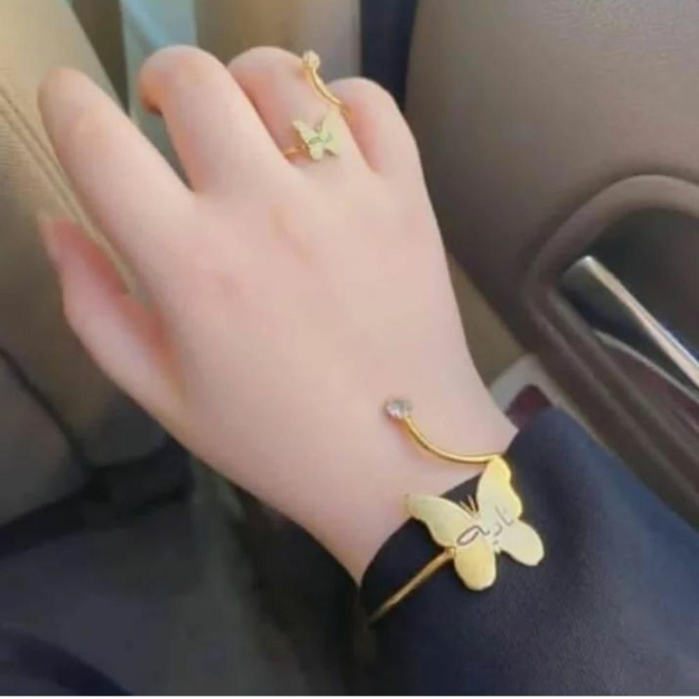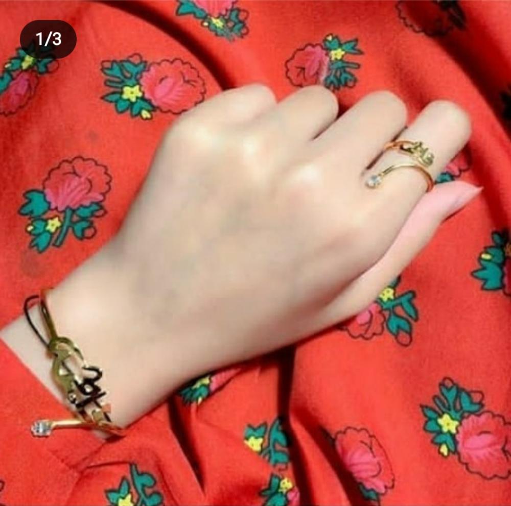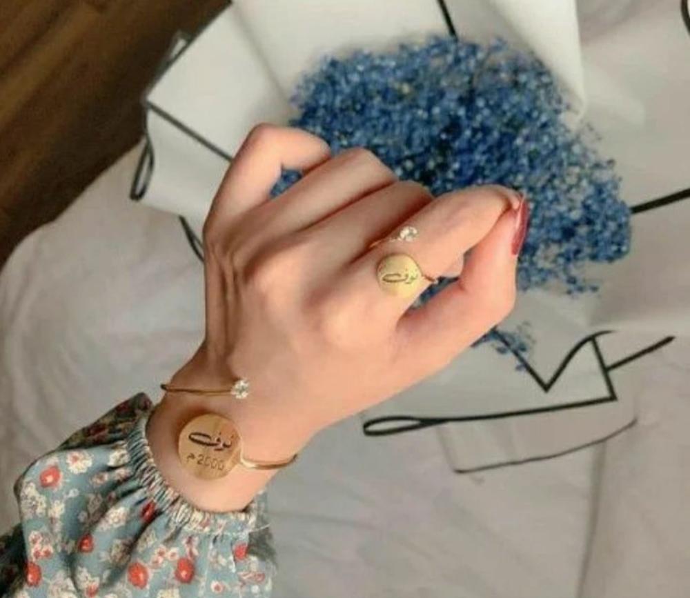 خاتم نسائية و اسواره بالاسم مطلي ذهب