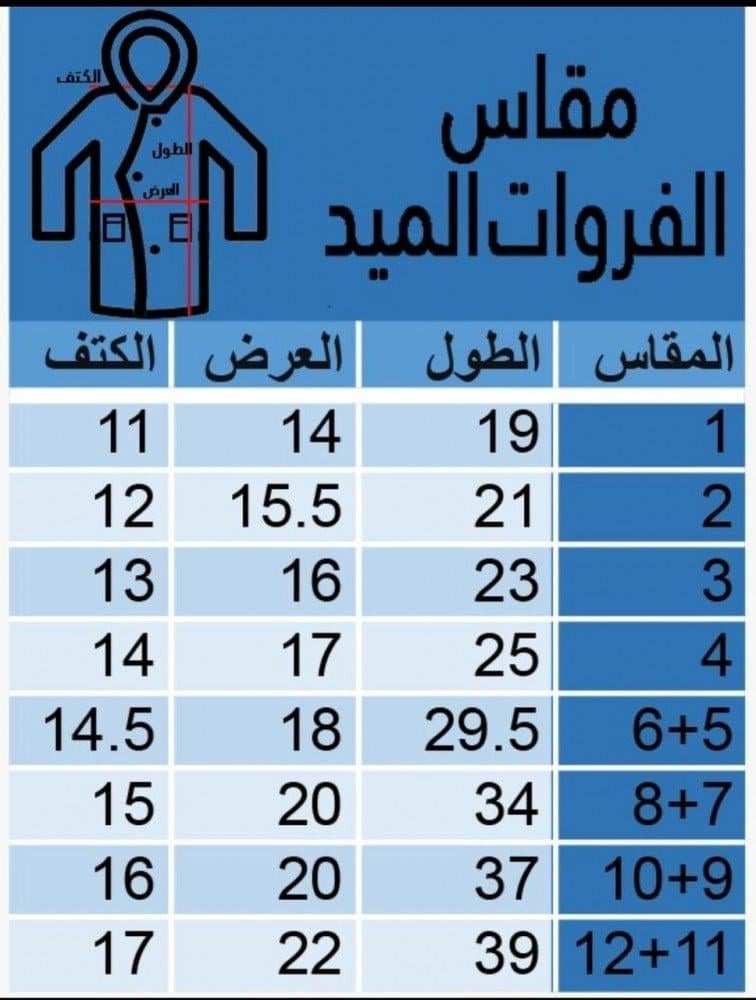 لمعرفة القياسات يرجى سحب الصورة لليمين او اليسار لمعرفة جدول القياسات